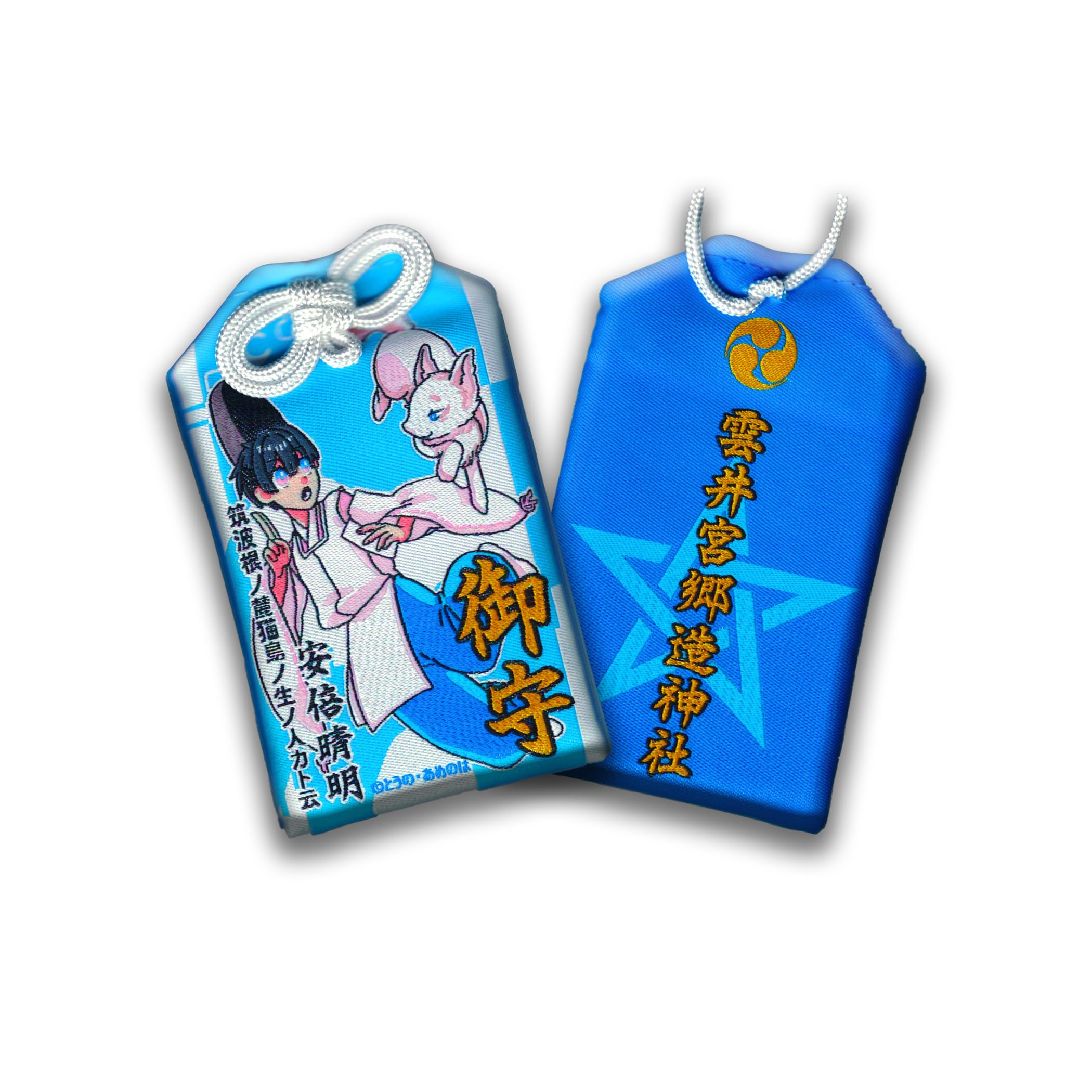 茨城県筑西市倉持に鎮まります雲井宮郷造神社との公式コラボ授与品で御座います。当地区に伝わる安倍晴明生誕伝説をモチーフに制作された可愛らしいお守りで御座います。超高精細な糸織り技術による、鮮やかな色合いと絹のような肌触りをお楽しみください!